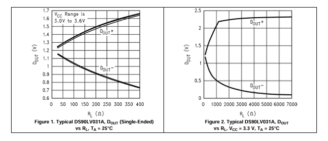Since A-link does not include a termination resistance, such a source, connected to the A-link input, develops the DS90LV031A "full" output signal voltage swing between 0 V and 2.4 V (or thereabouts).