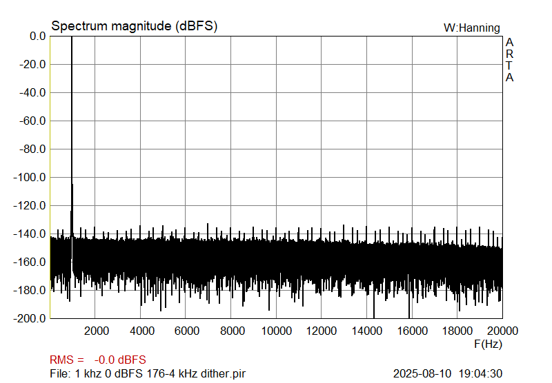 And, the same 1 kHz @ Fs 192 kHz, with dither.